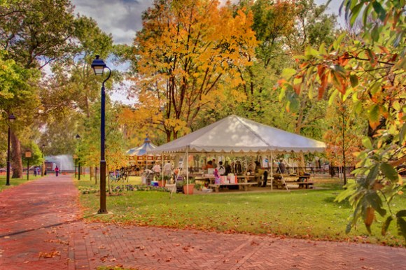 And emanating from the corners of the historic park, four new herringbone brick walking paths with nighttime lighting bring even more charm to the Square after dark. The paths lead to the centerpiece of the Square, the Franklin Square Fountain, a marble masterpiece built in 1838 surrounded by wrought iron fences, which is currently still going under cosmetic restoration.